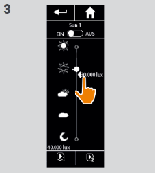 1 - Verschieben Sie den Pfeil, um die Sonnenlichtintensität = den Schwellenwert einzustellen.