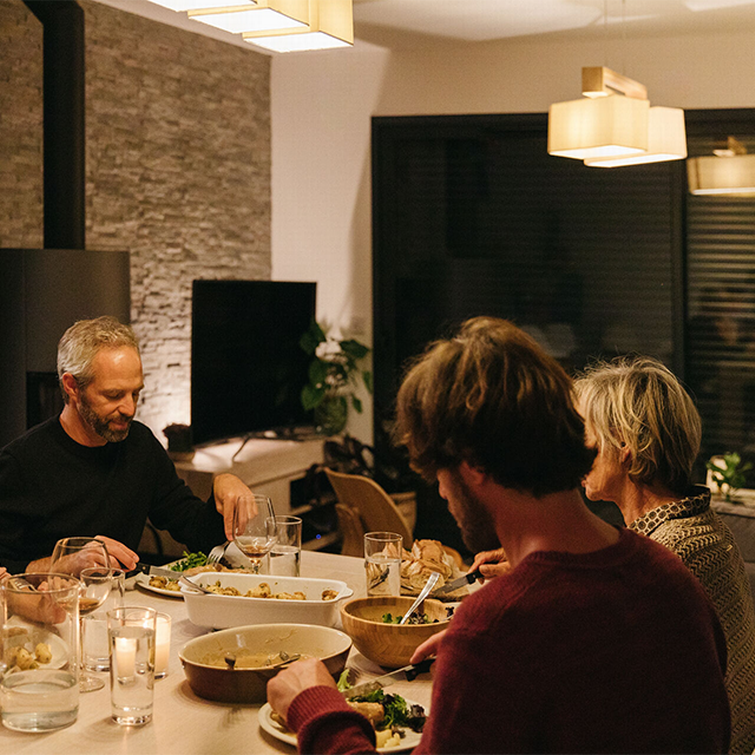 Wohlfühlatmosphäre dank DimmfunktionBei einem schönen Abend mit Freunden ist auch die richtige Stimmung relevant - Helfen Sie ganz einfach nach mit Ihrer smarten Beleuchtung und dimmen Sie nach dem Essen mithilfe einer Fernbedienung bequem das Licht! So schaffen Sie eine gemütliche Atmosphäre, in der sich jeder Gast gleich zuhause fühlt.