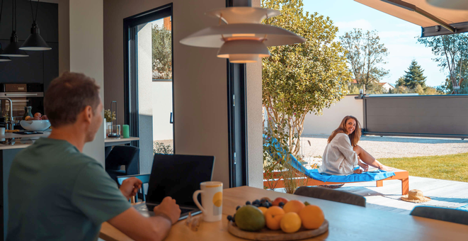 Und wenn Sie möchten, geht noch mehr: Verbinden Sie Ihre Funkprodukte mit TaHoma, dem Smart Home Hub von Somfy. Dann reagiert Ihr Sonnenschutz automatisch auf Sonne, Uhrzeit oder Temperatur. Oder Sie steuern alles per App und Sprache.