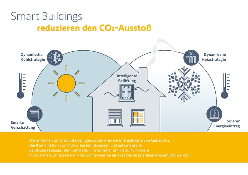 Um den wachsenden Herausforderungen des Klimawandels besser zu begegnen, muss Energie effizienter genutzt werden. Dabei kommt dem smarten Sonnenschutz für Wohn- und Nichtwohngebäude angesichts zunehmender sommerlicher Hitzewellen eine entscheidende Bedeutung zu. Funkmotorisierte und automatisch gesteuerte Rollläden und Raffstoren beugen gesundheitlichen Beeinträchtigungen vor und helfen, den Einsatz umweltschädlicher Klimaanlagen zu reduzieren.