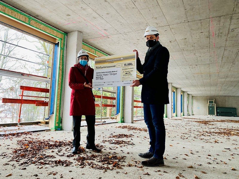 Seit Mai 2020 baut das Deutsche Institut für Ärztliche Mission e.V. (Difäm) auf der Tübinger Lechlerhöhe ein stationäres Hospiz für den Landkreis Tübingen. Der Bau des Hospizes wird rein über Spenden und Drittmittel finanziert. Als eines der führenden Industrieunternehmen der Region, zu dessen Leitbild die soziale Verantwortung und gesellschaftliche Solidarität zählt, unterstützt Somfy den Neubau aus vollem Herzen mit einer Weihnachtsspende in Höhe von 15.000 Euro und übergab heute Morgen vor Ort den Spendenscheck.